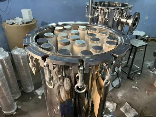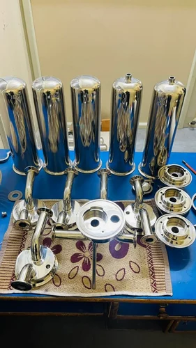 Stainless steel portable water filter is a unit which consists of two vessel made of steel. The top vessel is used to store raw water. It has one/two ceramic candles at the bottom which allow water to flow across it and traps suspended particles.